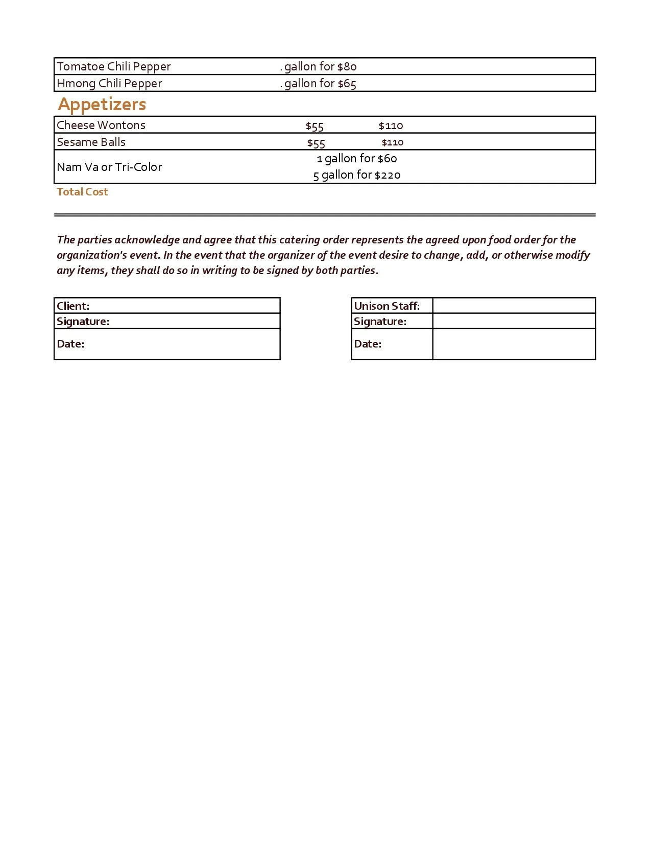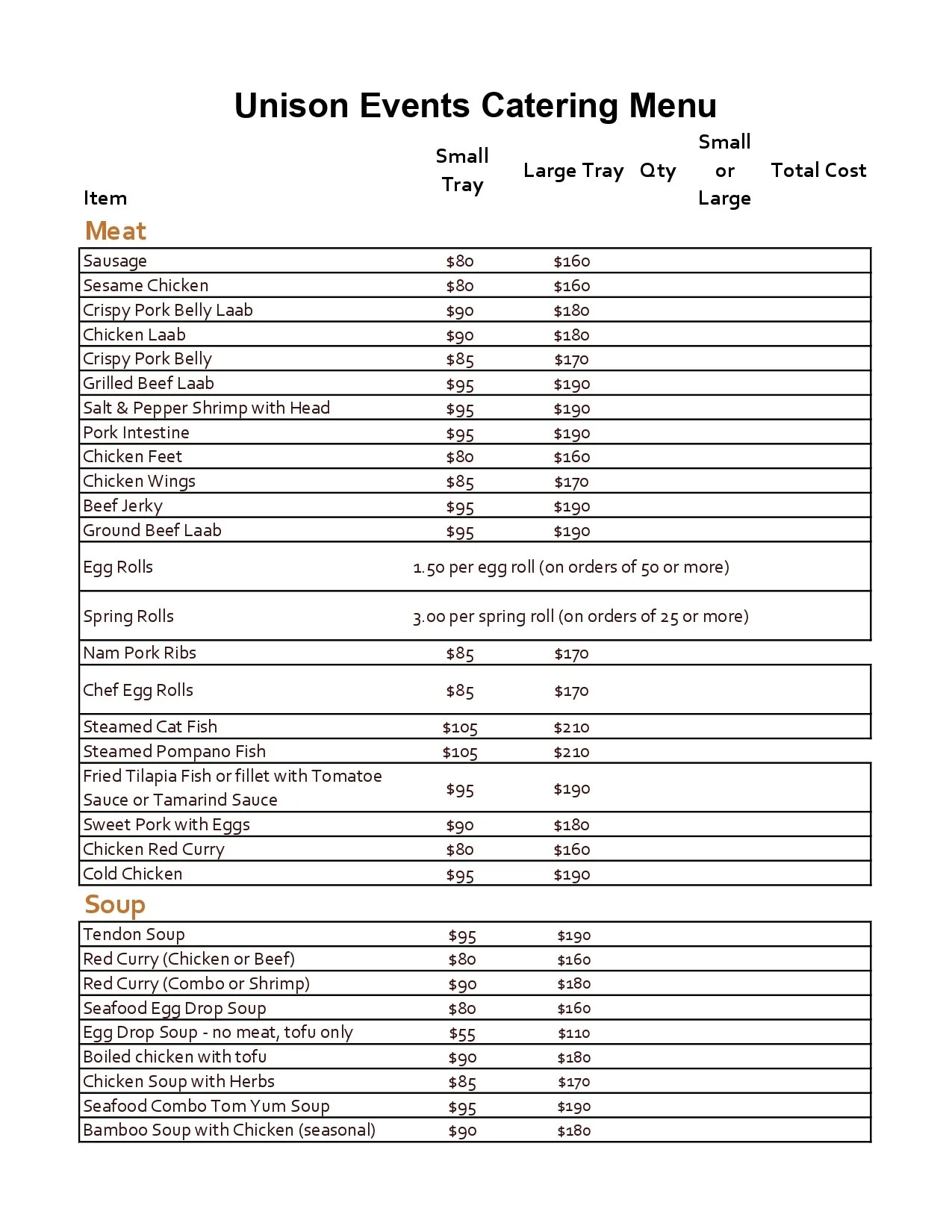 Catering Menu